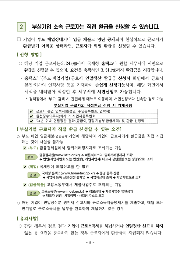 - 환급금 조기지급 및 신청 방법